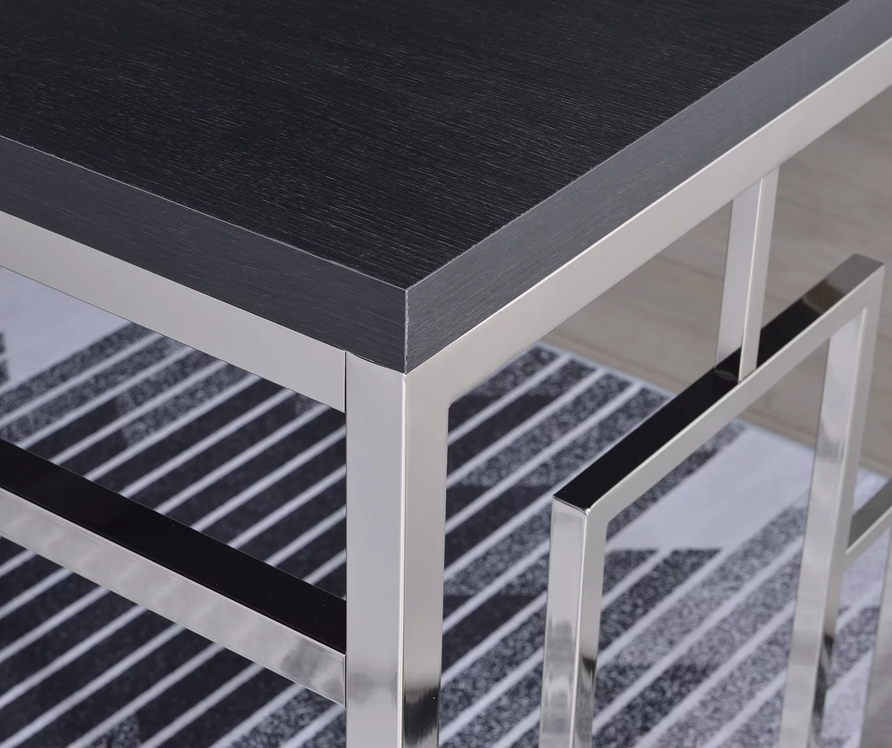 - Stunning geometric table frame with square accents sides in shiny chrome