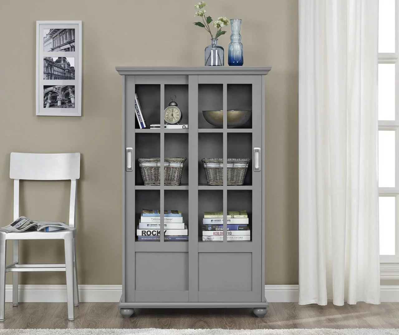 Ameriwood Glass Door 4-Shelf Bookcase – Stylish Storage Cabinet for Home & Office