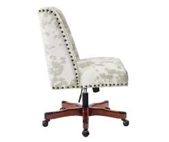 - Enhance your office decor with the Austin Brown Linen Cow Print Office Chair, featuring a unique cow print design that adds a touch of elegance and personality to your workspace.