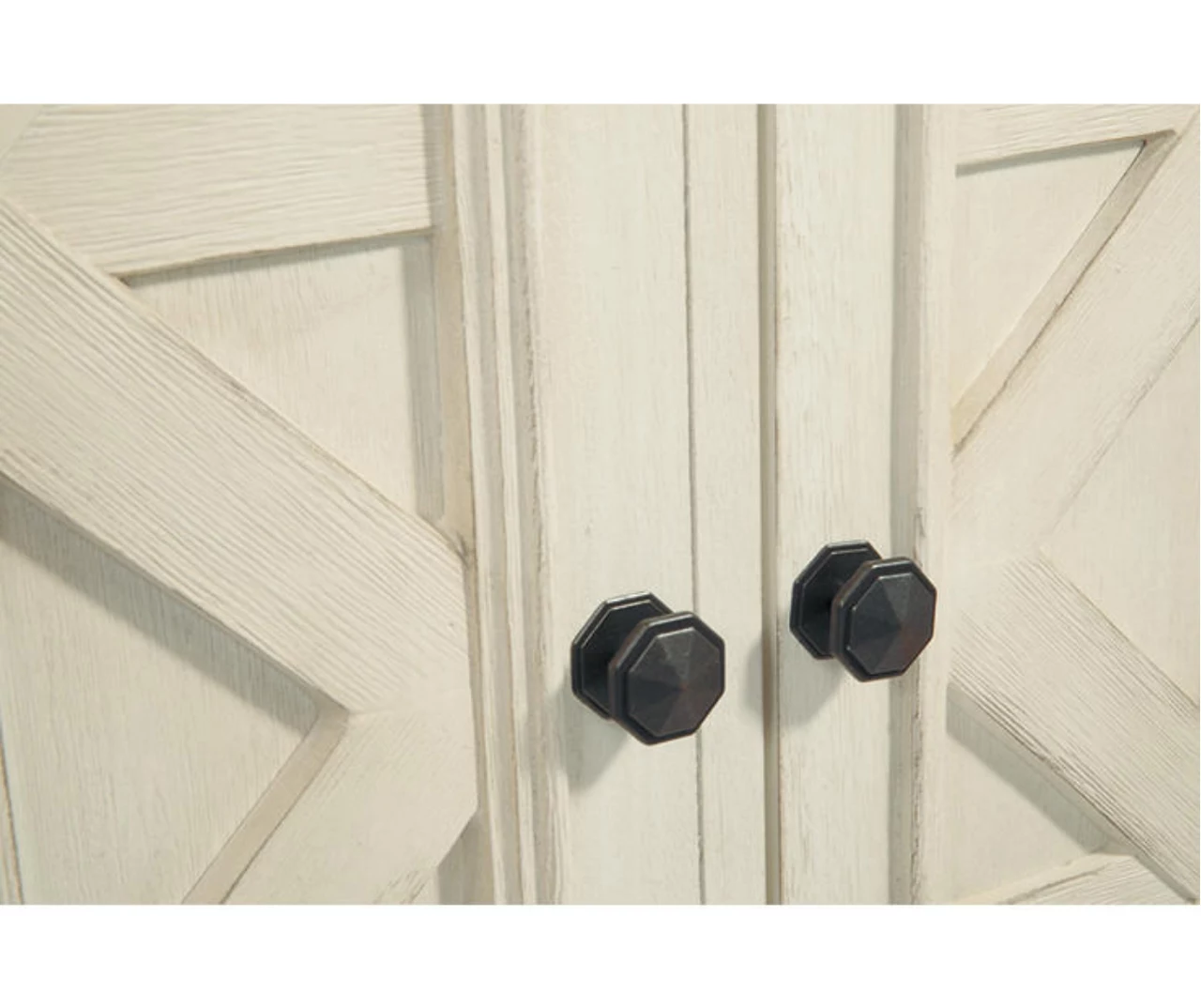 - Offers 2 adjustable shelves for storing dinnerware and accessories