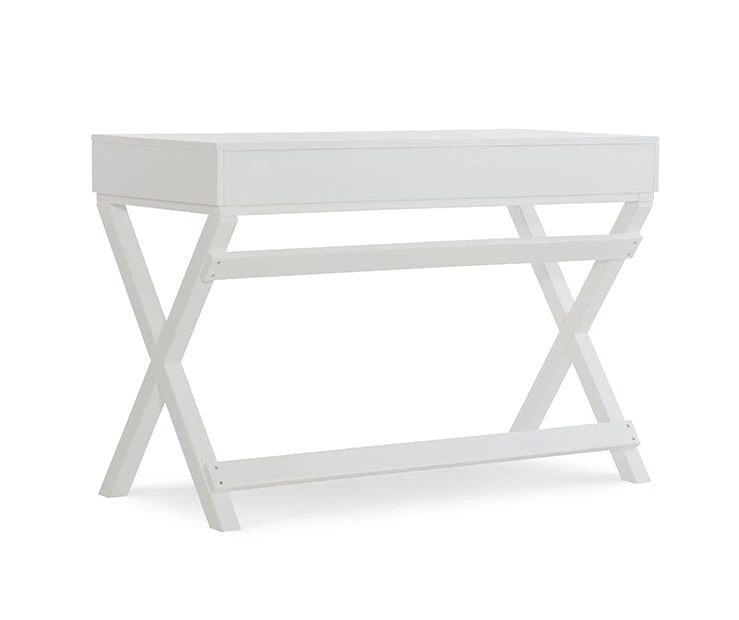 - Elevate your workspace with the Cami White X-Base Campaign Writing Desk, designed for both style and functionality. Its minimalist design fits seamlessly into any modern interior.
