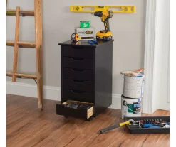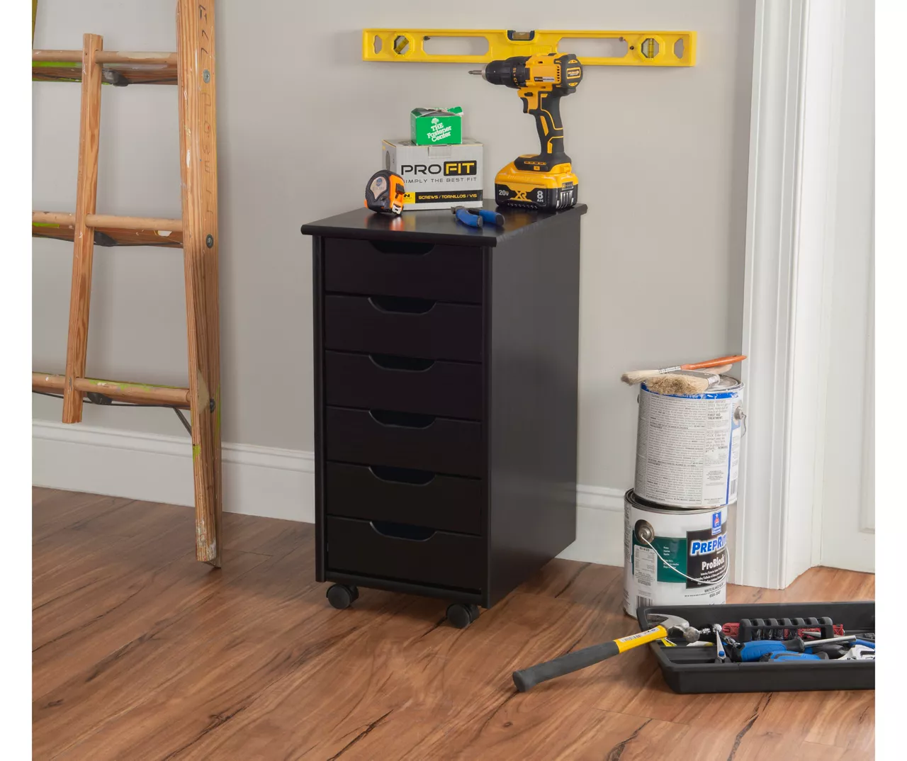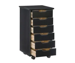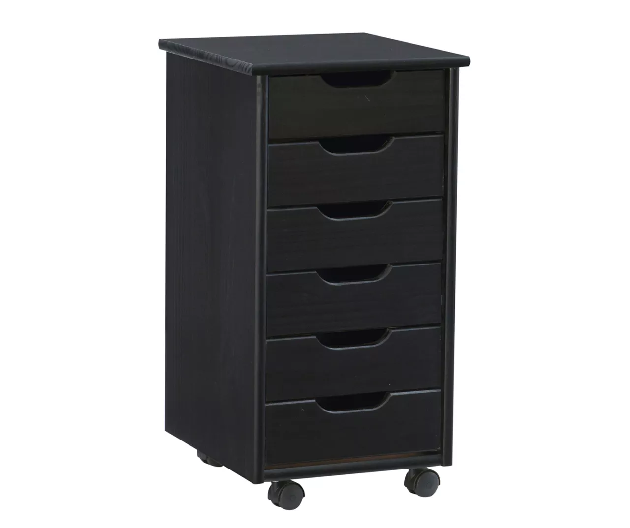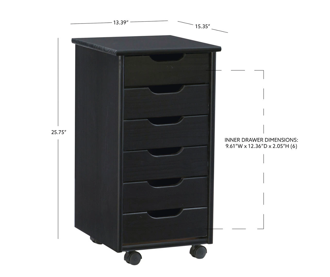 Craft Mate Black Wood 6-Drawer Rolling Storage Cart | Portable & Stylish Organizer