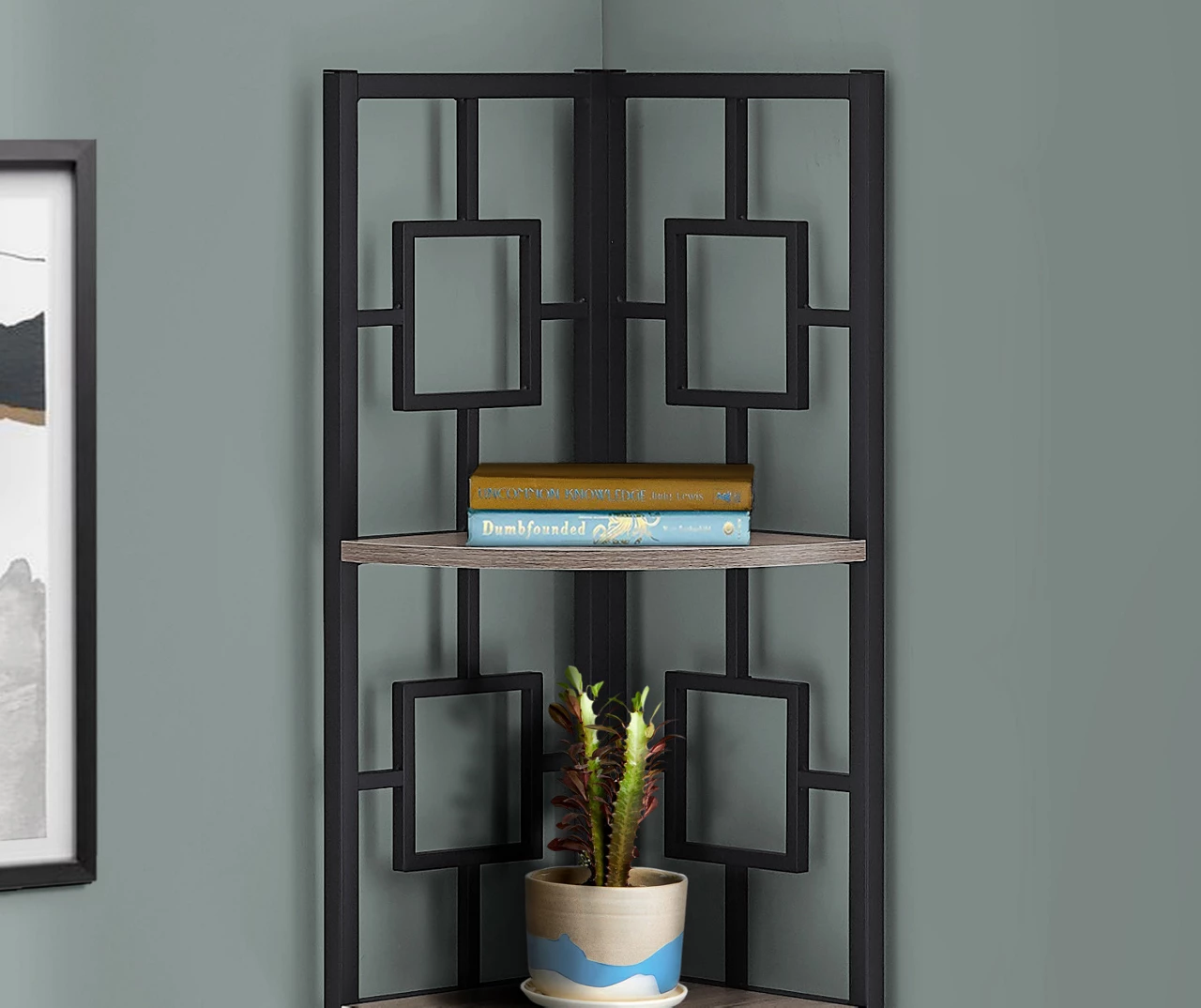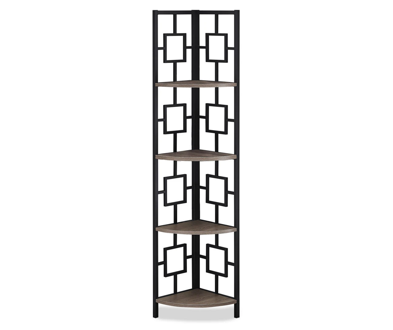 Dark Taupe Square 4-Shelf Corner Bookcase – Space-Saving Storage Solution