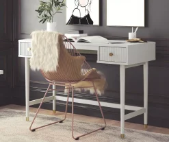 - Offers 2 drawers with textured ribbed fronts and gold pulls for office and item storage