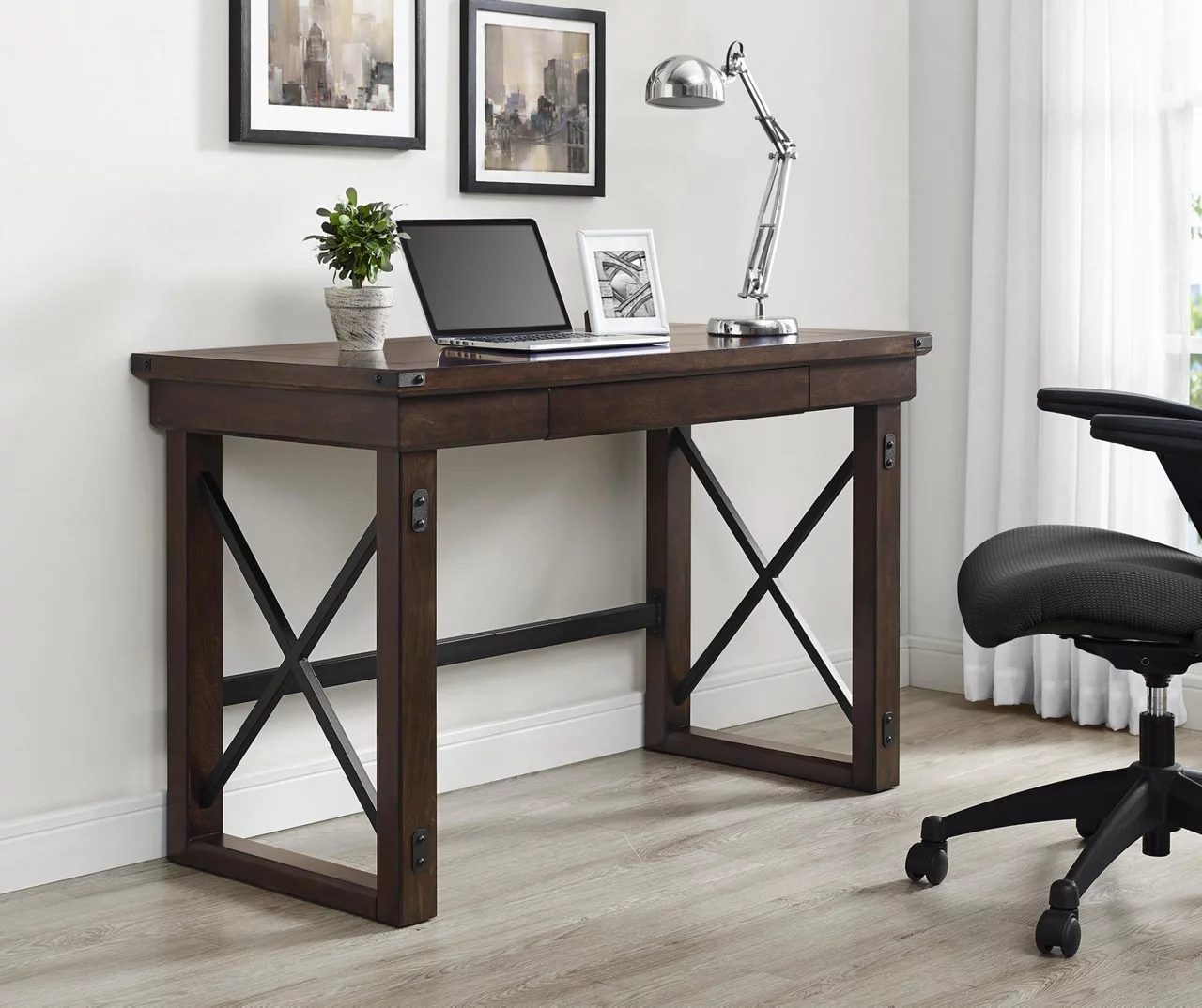 - Made from real wood veneer and metal for a long lasting desk
