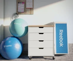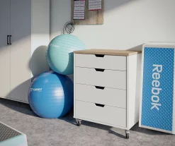- Constructed from laminated engineered wood with a white finish and weathered oak top