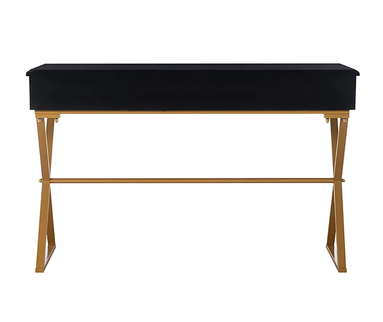 - Easy to assemble and designed for convenience, the Glam Black & Gold Campaign Desk is an ideal choice for professionals and students alike.