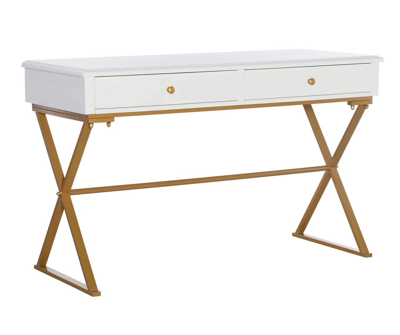 - Stylish and Functional: The Glam White & Gold 2-Drawer Campaign Desk combines elegance with practicality. Its chic white finish with gold accents adds a touch of sophistication to any space.