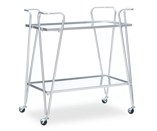 - The Hampton Silver 2-Shelf Rolling Steel Bar Cart is a versatile and durable storage solution, perfect for organizing your home or office. Its sleek silver design adds a modern touch to any space.