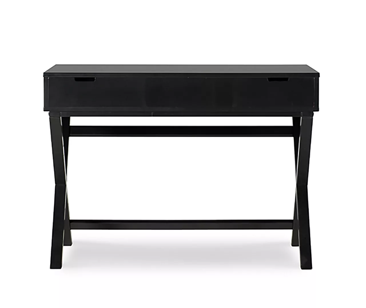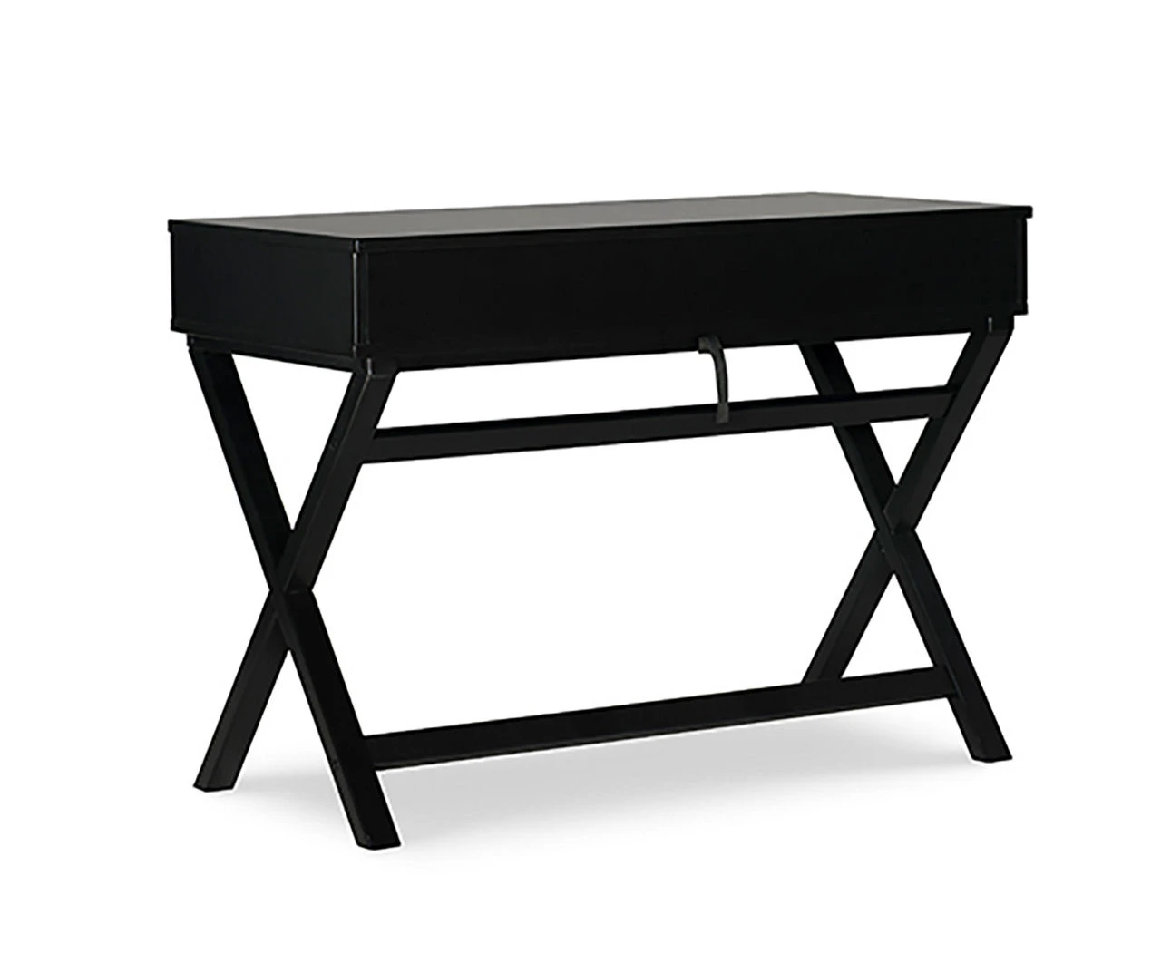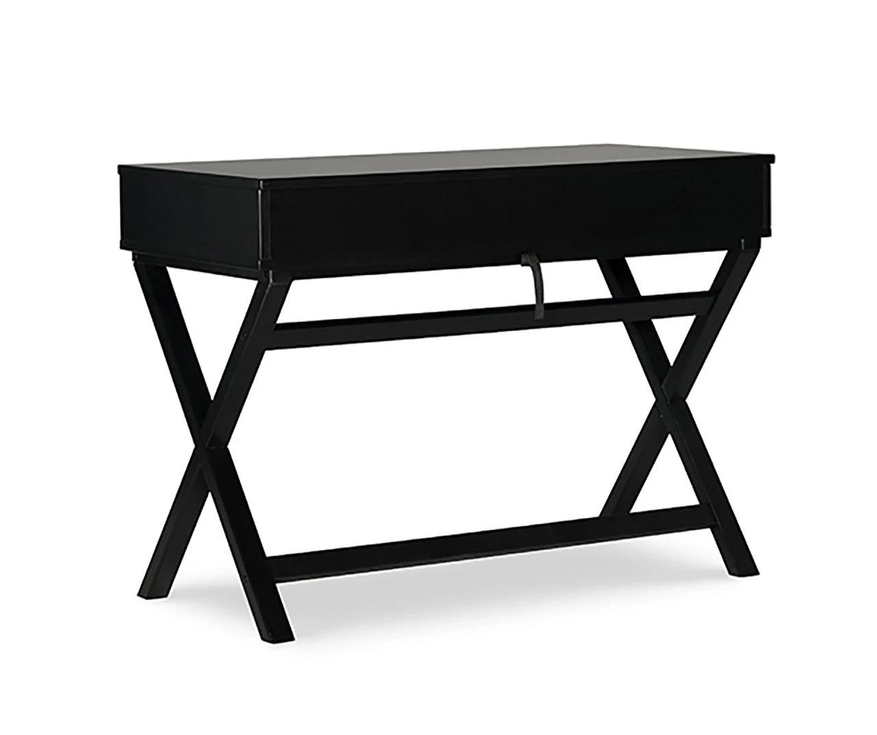- Backed by our satisfaction guarantee, purchase the Kari Black Lift-Top Campaign Desk with confidence, and elevate your workspace today!