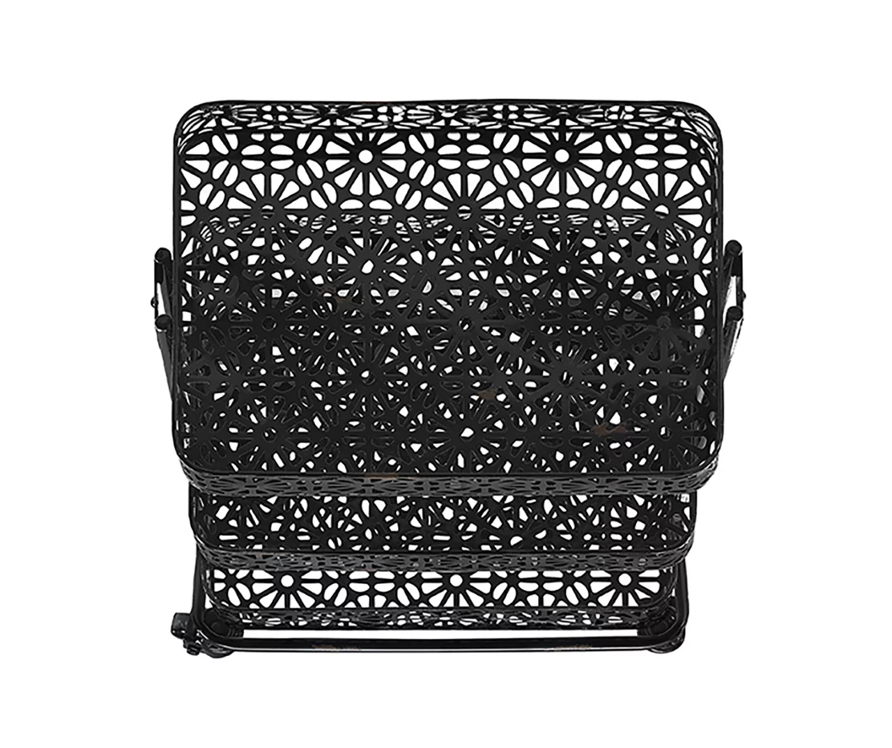 Mabry Black 3-Tier Pierced Floral Rolling Cart – Stylish Storage Solution