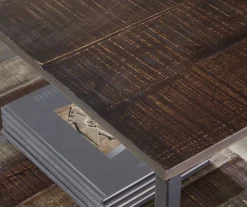- Enhance your living space with the Lamoney Gray, White & Brown Slat Console Table. Its contemporary design adds a touch of elegance to any room.