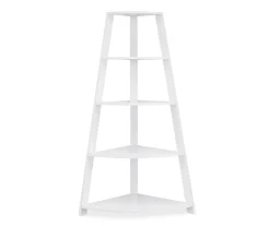 - The Monarch 4-Shelf Etagere Corner Bookcase is designed to maximize your space efficiency. Its corner design fits seamlessly into any room, making it ideal for small apartments, offices, or living spaces.