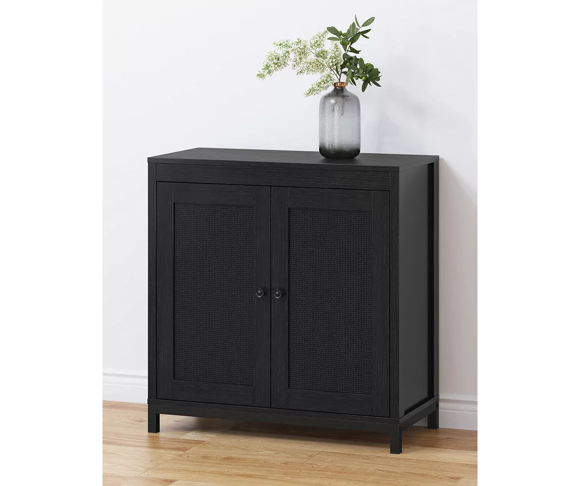 - Enhance your home organization with the Real Living Seven Hills Cane Door Storage Cabinet. Its chic cane door design adds a touch of elegance to any room.