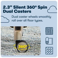 - Adjustable seat height, lumbar support, and smooth-rolling casters provide customizable comfort and easy mobility.