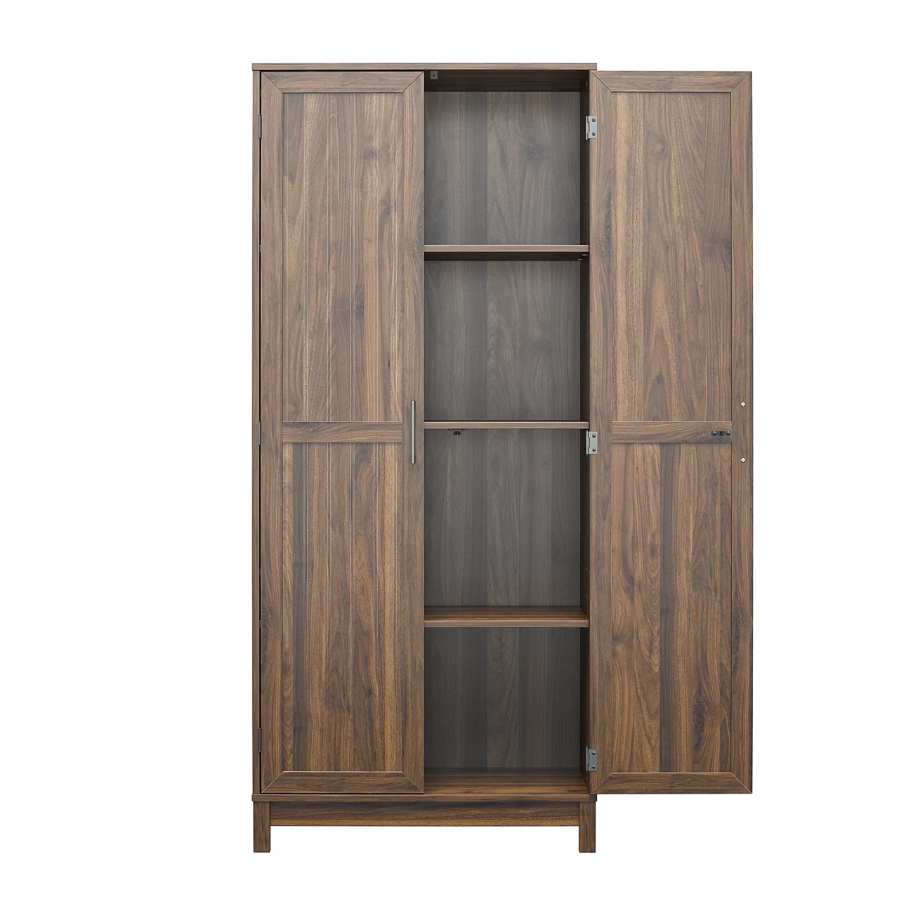 - Traditional framed doors with wainscoting and frame in a Columbia walnut finish