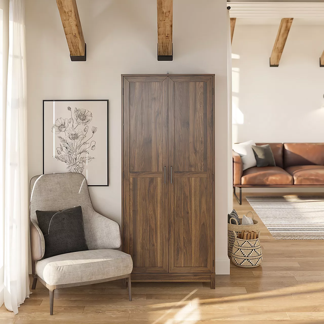 - Modern farmhouse-inspired storage cabinet