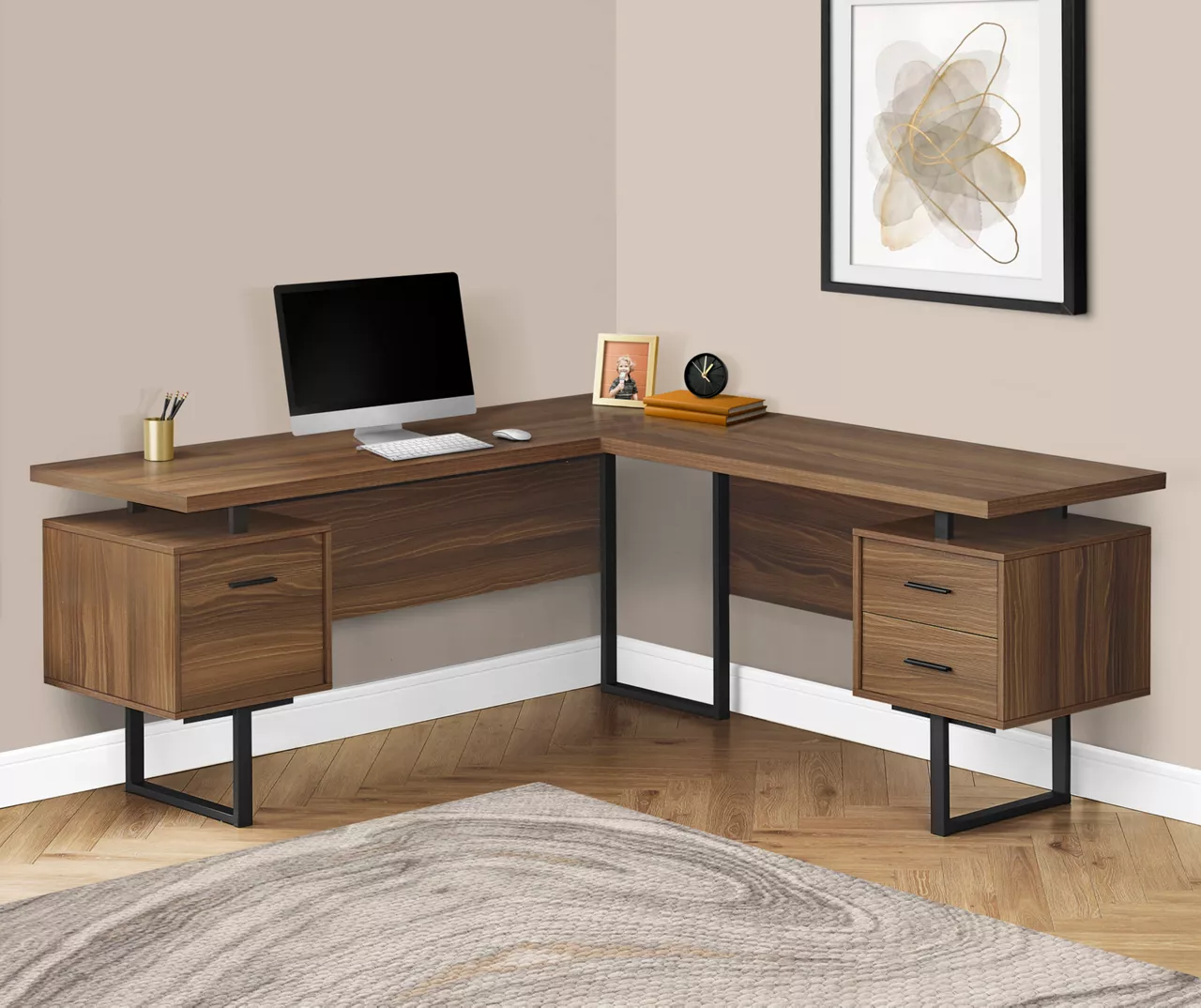 - Offers 2 storages drawers and hanging file drawer featuring thick-panel construction and metal drawer glides