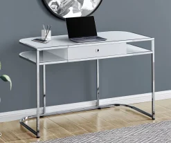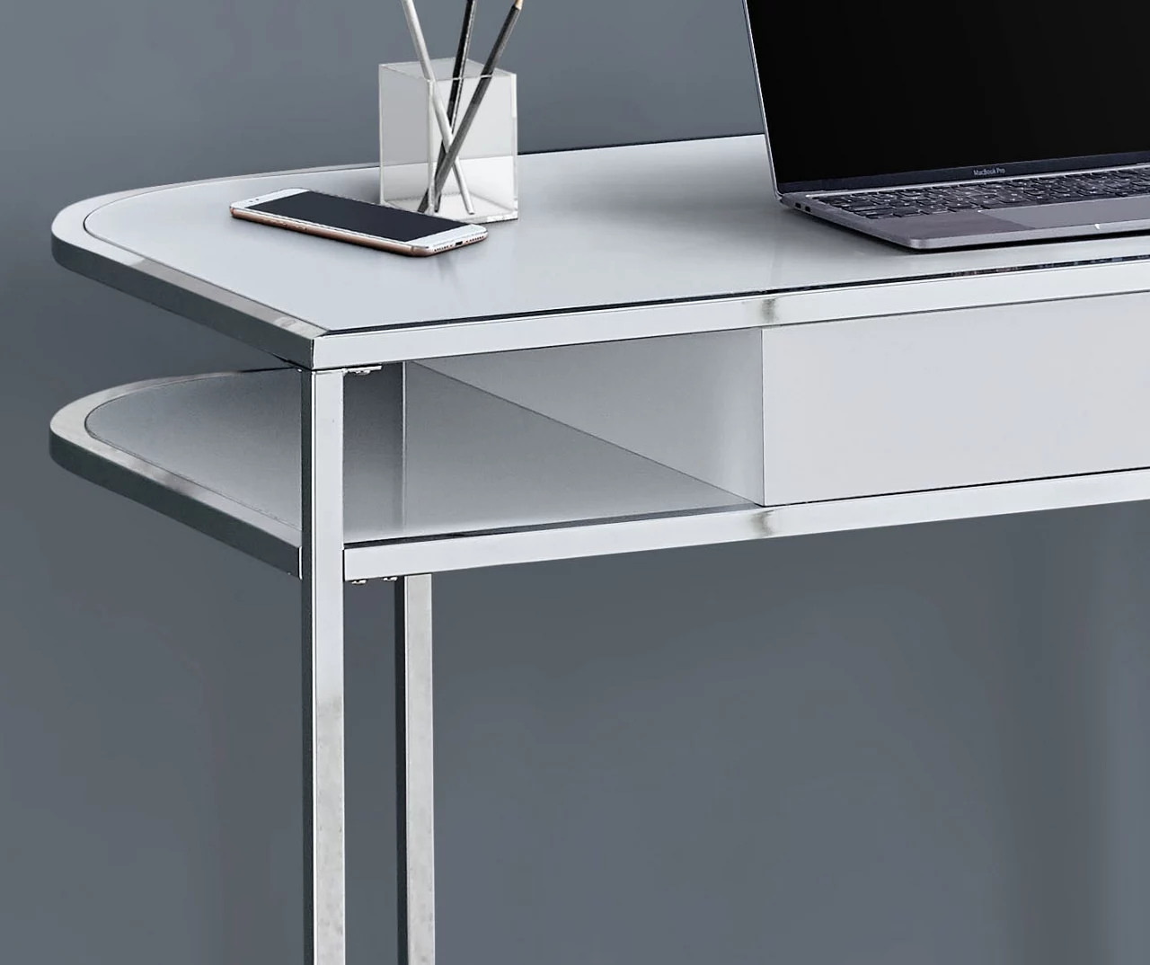 - Crafted with durable materials, this desk features a white finish with silver chrome accents, ensuring long-lasting use and a contemporary look.